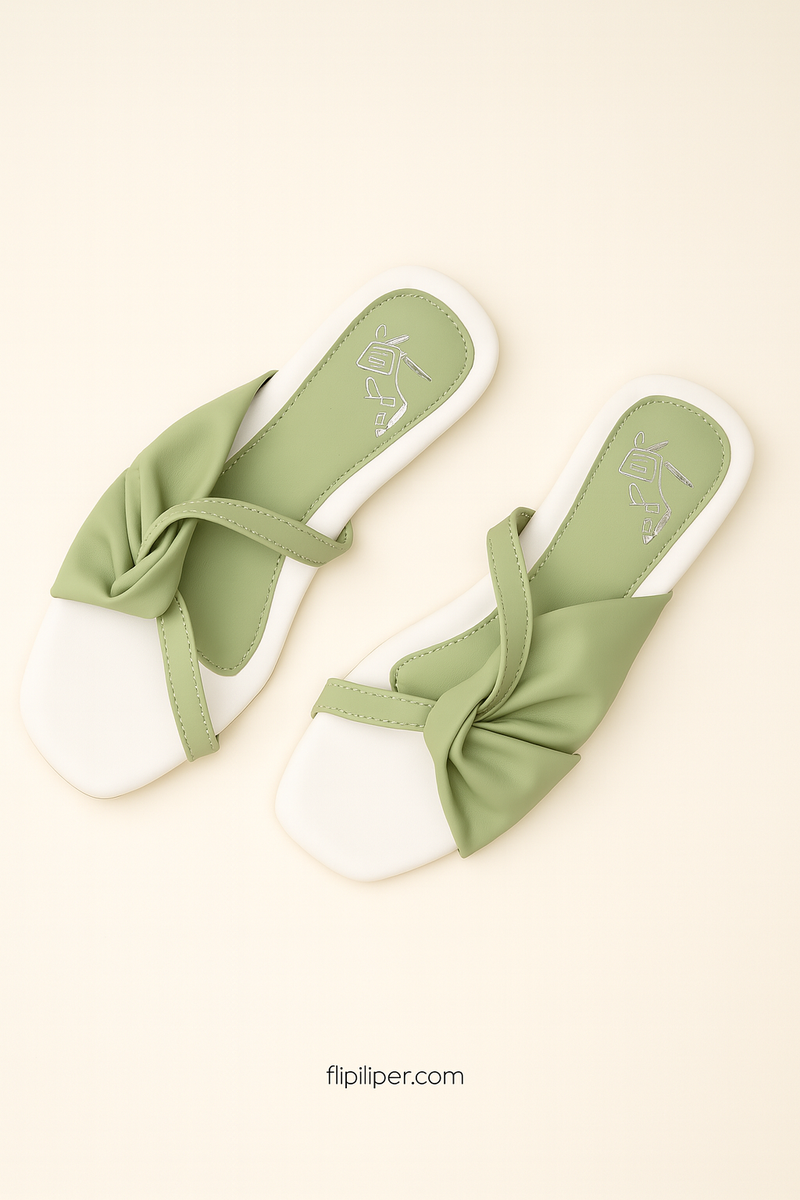 The Sage Green Bow-Strap Flats bring a refreshing and minimal style to your daily outfits.