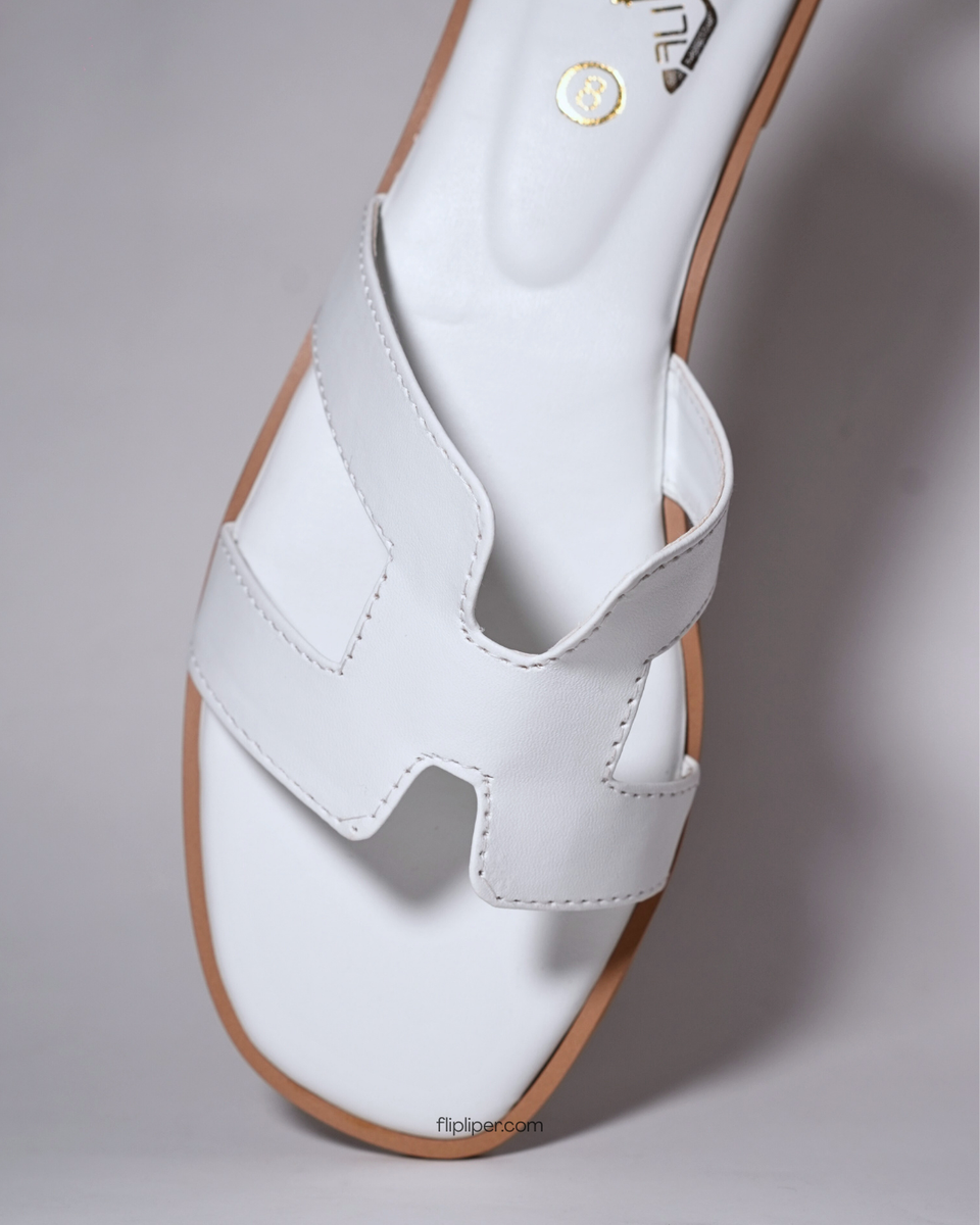 Made with high-quality soft material and a classic H-shaped upper, these flats provide a perfect mix of comfort and style. Their clean white shade makes them ideal for summers and easy to match with eastern & western outfits.